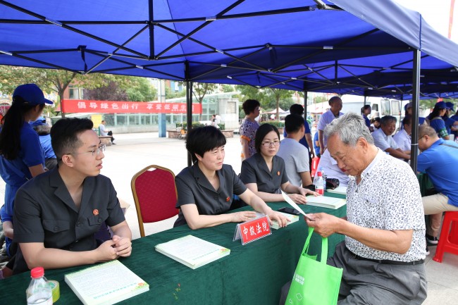 活动现场,围绕“美丽中国,我是行动者”主题,中院环资庭摆放环保主题宣传展牌,设置法律咨询台,并向来往群众发放《环境资源审判法律知识问答》1000余份。环资庭庭长蔡红莉就对污染环境罪、非法狩猎罪、非法捕捞水产品罪等11个常见环境资源犯罪如何处罚,向来询群众作详细科普讲解。