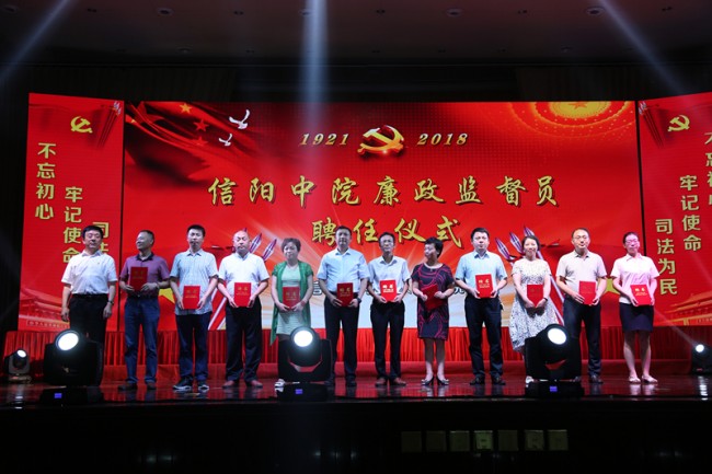 活动中,与会人员共同重温了入党誓词。孙同占书记为中院先进基层党组织、优秀党务工作者、优秀共产党员、文明庭室、文明干警、文明家庭代表颁奖。张新中院长为冯桂荣等十六名廉政监督员颁发聘任书。