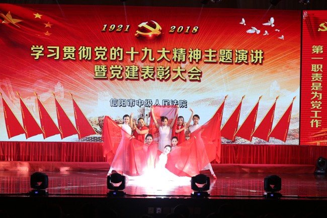 此次活动,以主题演讲结合文艺演出的形式,表达信阳法院干警对党的97岁华诞的深切祝福,展示了全市法院学习贯彻习近平新时代中国特色社会主义思想和党的十九大精神成效成果,进一步坚定了全市法院干警不忘初心、牢记使命、司法为民决心,进一步增强全市法院法官队伍凝聚力、向心力,鼓舞激励每一名干警忠诚履责、敢于担当,为实现让人民群众在每一个司法案件中感受到公平正义的目标而不懈奋斗!