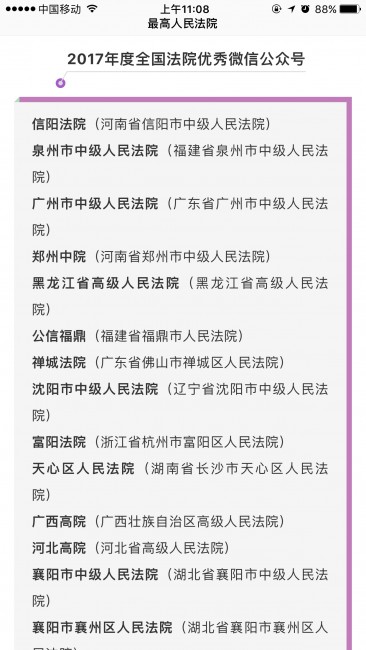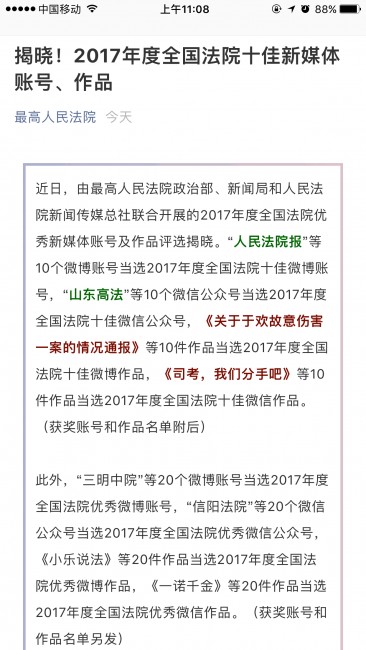 信阳中院官方微信公众号@信阳法院被评为 “2017年度全国法院优秀微信公众号”