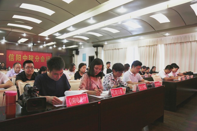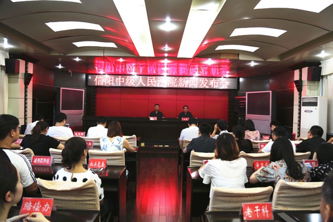 7月13日下午,信阳中院召开“2018年爱民实践服务承诺”新闻发布会。中院党组副书记、常务副院长王玉明及中院各部门相关同志参加发布会。中院新闻发言人、政治部副主任金波主持发布会。河南法制报、大河报、东方今报、河南经济报、映象网、信阳日报、信阳晚报、信阳电视台等媒体应邀参会。