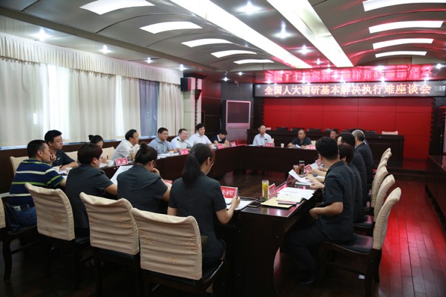 会上,孙岩指出,此次调研是按照全国人大办公厅信访局的年度工作计划的安排,确定涉党政机关执行难问题作为调研主题,主要基于党的十八届四中全会部署的全面依法治国的大背景下,最高法院作出了“用两到三年时间基本解决执行难问题”的承诺,在全国人大信访局来信来访中,涉及执行难的信访尤其是涉党政机关执行信访案件占比较高,10月份,全国人大常委会将听取最高法院基本解决执行难情况汇报,我们先来调研摸底打个前站,收集来自基层的意见和呼声,力争从立法层面上助力攻克执行难。