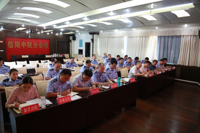 8月22日下午,信阳中院召开全市法院警务安全隐患集中排查整治活动动员会。信阳中院党组成员、副院长步辉、各县、区法院分管院领导、法警大队负责人以及中院法警支队全体干警参加会议。会议由法警支队支队长李忠智主持。