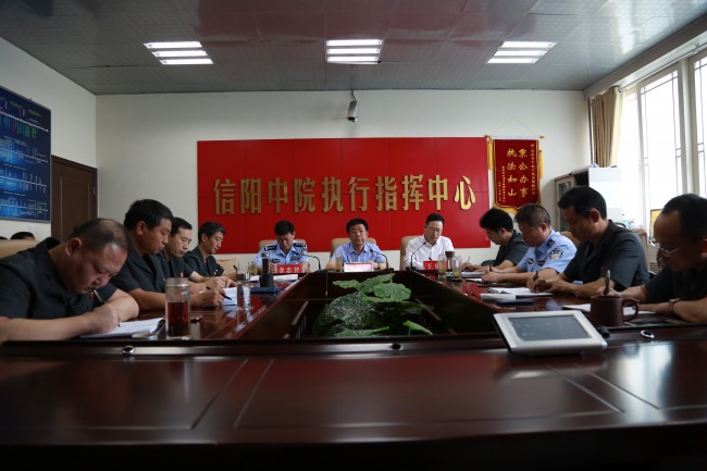 9月30日上午,信阳中院召开全市法院基本解决执行难工作推进会。信阳中院党组书记、院长张新中,党组副书记、常务副院长王玉明,法警支队支队长、执行局负责人李忠智及中院执行局全体干警参加会议。各县、区法院院长、执行局长及执行干警在各院执行指挥中心分会场,通过视频会议系统参加会议。