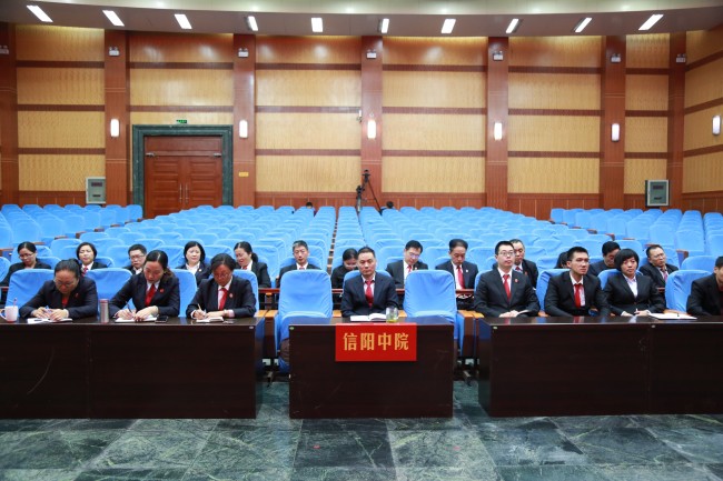 10月16日,信阳中院召开智慧法院建设推进会。中院党组副书记、常务副院长王玉明主持会议并讲话,中院各部门负责人、信息化有关人员在主会场参加会议,各县、区法院常务副院长、各部门负责人、信息化建设有关人员在分会场参加会议。