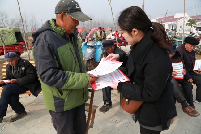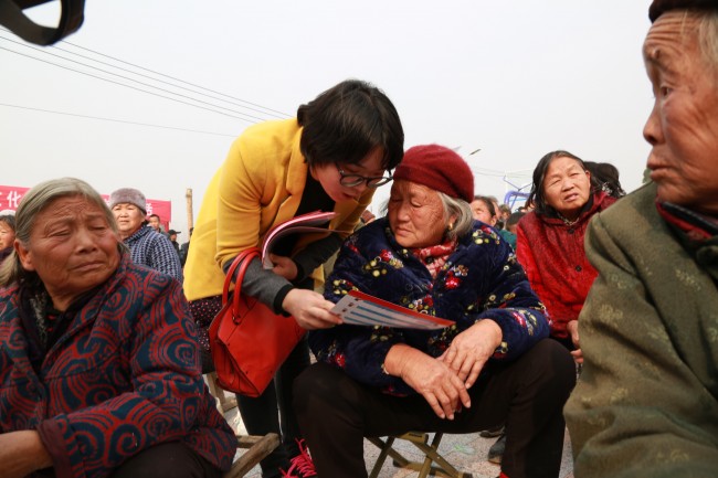 演出开始前,中院干警们向前来观看演出的群众发放宣传彩页,号召乡亲们为信阳政法工作点赞鼓劲。