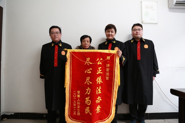 孙女士因一起民间借贷纠纷打起官司,一审判决后,对方当事人不服,上诉至中院。徐宏法官作为承办法官在二审审理中,迅速查明事实,高效办结案件,维护了当事人的合法权益。孙女士为表达感谢感激之情,向承办合议庭赠送锦旗,就发生文中开头一幕。