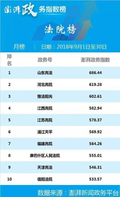 2018年7月,信阳中院拓宽宣传渠道,在全省率先开通“信阳法院”澎湃政务号,与@信阳法院官方微信公众号、今日头条号、抖音号、一点资讯号、官方微博组建成信阳中院自媒体矩阵。截至目前,信阳法院在政务号客户端共发布政务信息263条,总阅读量达400多万余人次,在澎湃新闻传播力排行榜中频频登榜,成为@信阳法院新媒体又一“靓丽名片”。