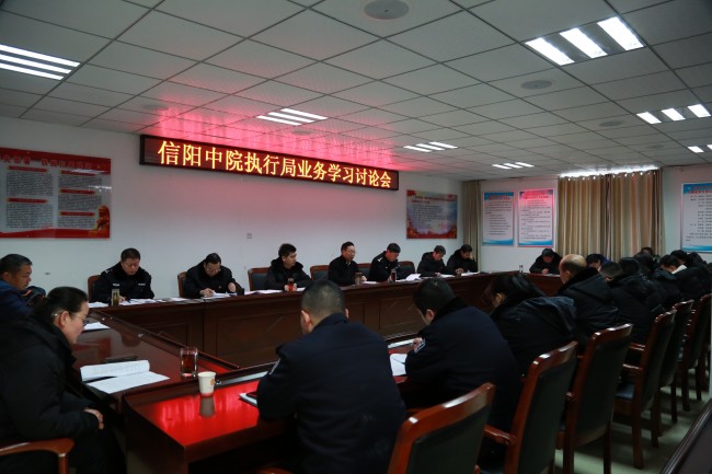 “基本解决执行难”已经进入最后总攻冲刺阶段,为进一步统一思想认识,增强执行干警业务素质,提升执行办案质效,有效破解执行难题,1月3日上午,信阳中院执行局在三楼会议室召开执行业务学习讨论会。信阳中院党组副书记、常务副院长王玉明,执行局全体干警及法警队抽调干警参加会议。会议由信阳中院法警支队支队长、执行局负责人李忠智主持。