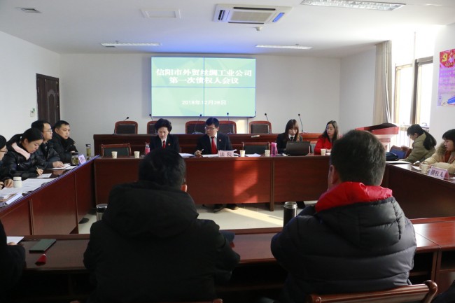 2018年12月28日早上8点,信阳中院破产审判团队克服严寒天气、雪地路滑的困难,中院副处级审判员齐秀、民三庭员额法院张伟等一行到市商务局召开商务局系统下属11家国有“僵尸企业”第一次债权人会议。