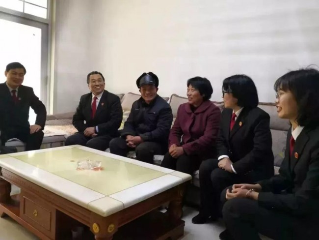 一见面,孩子的姥爷像见到老朋友一样亲切,拉着简庭长的手就往家里带。大家坐在一起聊聊天,就像一家人一样其乐融融。