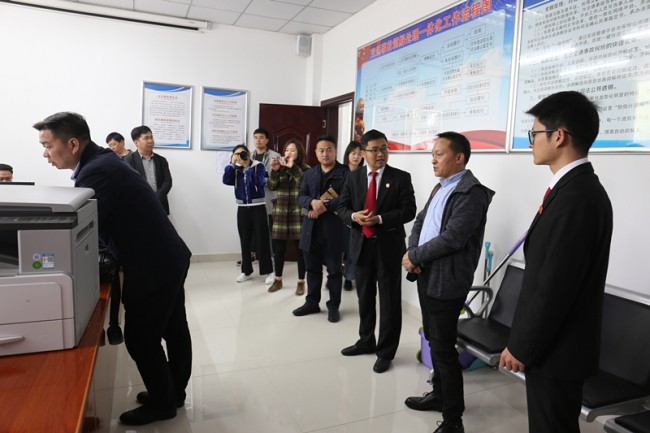 11:30 随后,在董王超的带领下,记者参观了罗山县道路交通事故一体化处理中心的综合服务大厅、法官办公室、审判庭、调解室等设施。