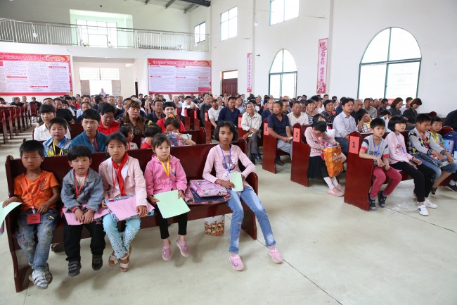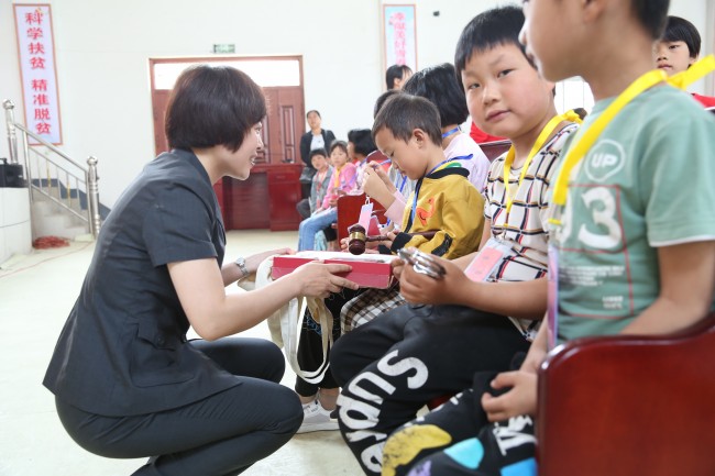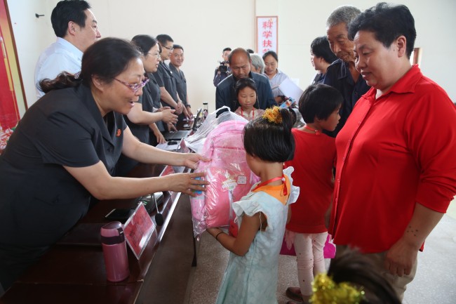 信阳法院干警们给孩子们送上“微心愿”礼物,收到礼物孩子们都露出了开心的笑容。