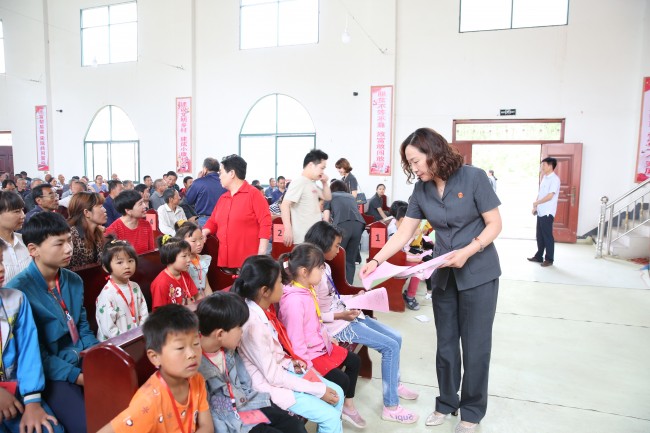 5月31日上午7时许,信阳中院工会副主席简春红、机关党委副书记徐贵瑛、刑三庭庭长朱虹、赔偿办副主任张玲一行带着“微心愿”礼物驱车前往柳树店乡,想赶在“六一”儿童节之前,把礼物送到孩子们手中,给他们送去暖心的节日祝福与问候。