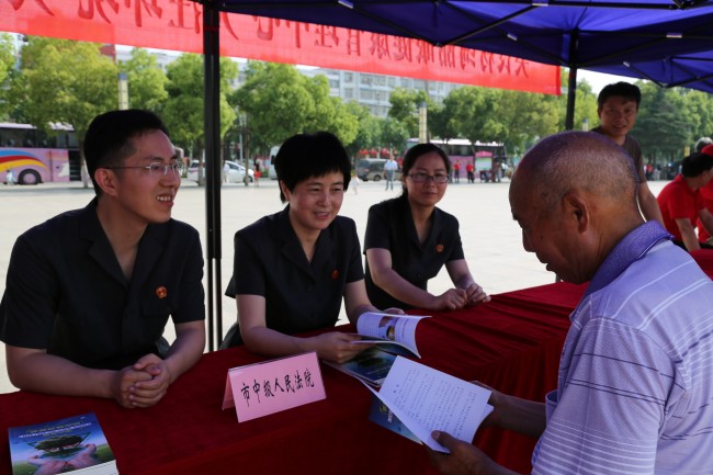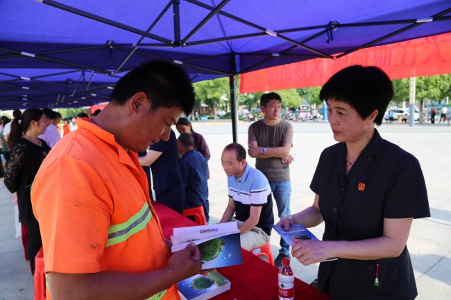 在第48个世界环境日来临之际,6月5日上午,信阳中院在平桥世纪广场开展以“强化环境审判职能、共建生态文明信阳”为主题的世界环境日集中宣传活动,中院环境资源审判庭干警现场普法,号召公众积极参与生态文明建设,携手行动,共建美丽信阳。