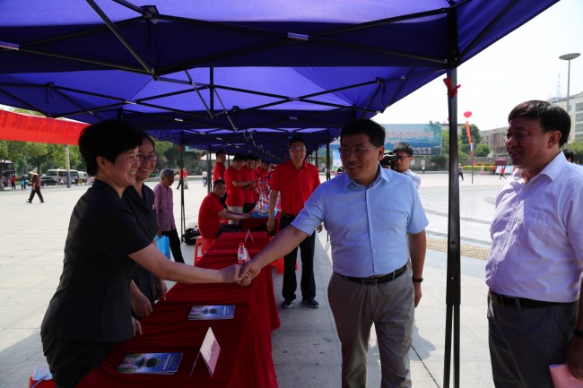 活动现场,中院设置咨询台,干警们耐心解答群众有关环保的法律问题,普及环境保护相关法律知识,向现场群众发放宣传资料,并讲解环保节能小常识。同时摆放“信阳法院环境资源审判概况”、“公益诉讼案例”、“环境资源审判典型案例”3块主题宣传展板,吸引过往群众驻足观看。活动期间,信阳市委常委、常务副市长王新会来到中院咨询台前,和干警们亲切交谈,并听取中院环境资源审判庭庭长蔡红莉对法院发挥审判职能助力环境保护等工作的介绍。