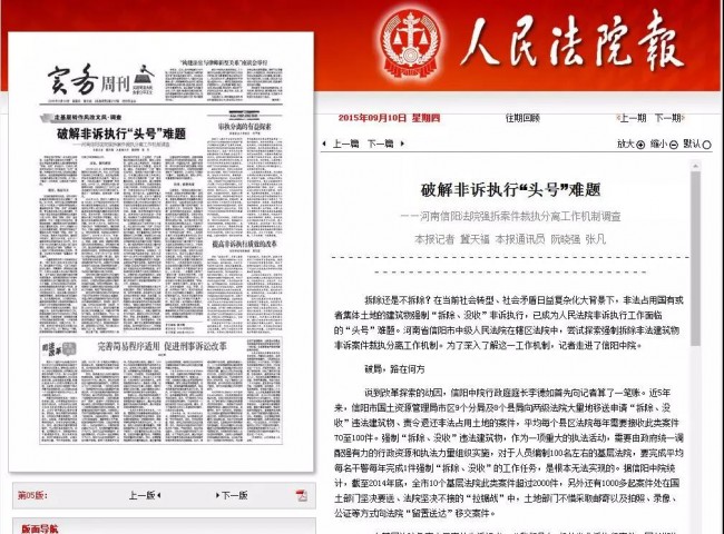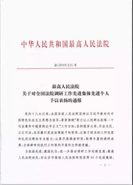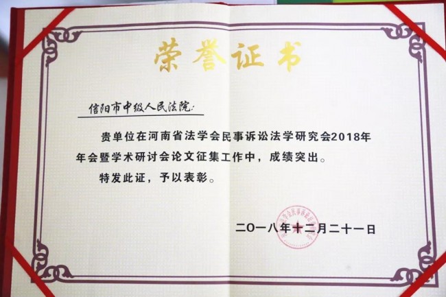 近日,信阳中院研究室被最高人民法院表彰为 “全国法院调研工作先进集体”。