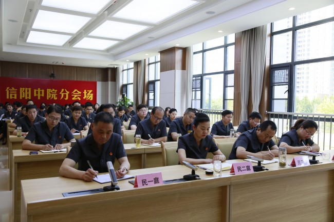 2019年7月10日下午,信阳中院召开2019年上半年民事审判工作总结会。中院审委会专职委员徐鸿、民一庭、民二庭、民三庭、研究室、审管办的员额法官、法官助理和书记员参加会议。会议由中院党组成员、副院长翟陆主持。