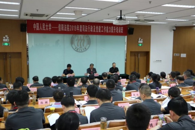 为进一步提升全市法院队伍整体素质及履职能力,加快推进全市法院队伍革命化、正规化、专业化、职业化建设,促进党建工作再上新台阶,信阳中院组织开展为期一周的司法行政及党建工作能力提升培训班。2019年8月12日上午,信阳法院司法行政及党建工作能力提升培训班开班仪式在人民大学国学馆拉开帷幕。中院党组成员、政治部主任高建刚及信阳两级法院的170余名学员参加开班仪式。中国人民大学中国经济改革与发展研究院培训部黄泽善老师主持开班仪式。