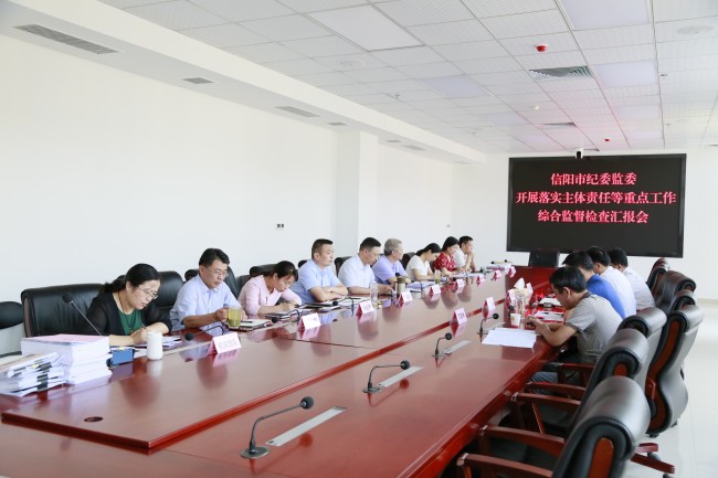 8月19日,信阳市纪委第四监督检查室主任张光宏一行四人赴信阳中院开展落实主体责任等重点工作综合监督检查,并召开座谈会。信阳中院党组副书记、常务副院长王玉明参加会议并主持。党组成员、调研员张维民、党组成员、政治部主任高建刚及相关部门负责人参加会议。