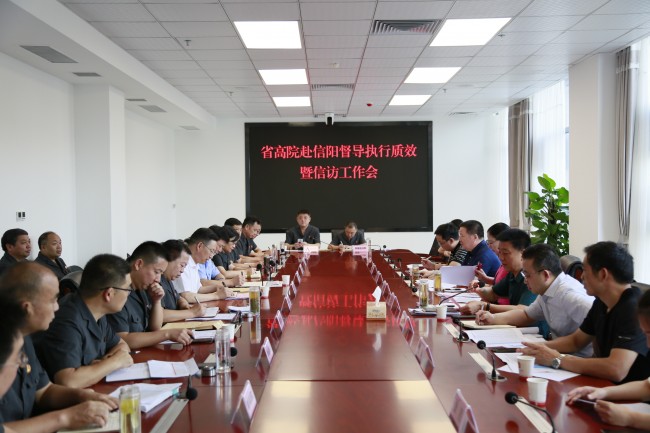 会上,省法院通报信阳法院执行质效、涉执信访工作和终结案件抽查情况。