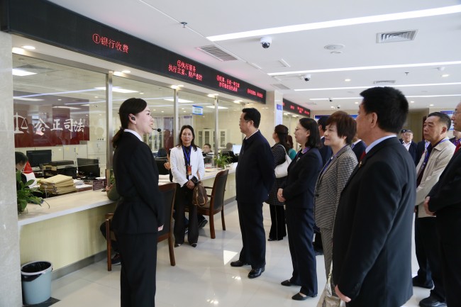 代表委员实地视察了中院诉讼服务中心,听取工作人员关于诉讼服务窗口、涉军案件绿色通道、便民服务自助平台、网上自助立案服务、信访接待服务、综合休息服务区等功能区的介绍,重点了解涉军维权“信阳模式”工作情况及取得的成效。在信阳中院信息集控中心,代表委员详细了解信阳法院智慧法院建设情况,并观看了相关专题片。