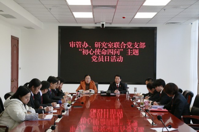 11月25日,信阳中院审管办、研究室联合党支部开展“初心使命四问”主题党日活动,信阳中院审判委员会专职委员徐鸿主持会议并讲话,审管办、研究室全体党员参加主题活动,机关党委副书记徐贵瑛列席活动。
