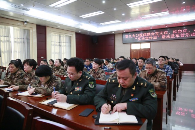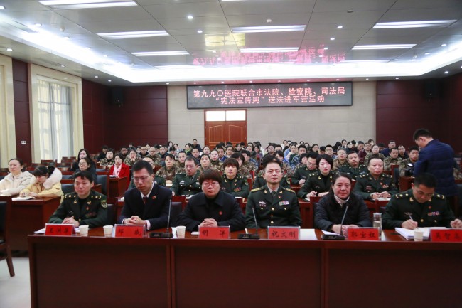 为深入学习贯彻党的十九届四中全会精神,营造全社会学习宣传宪法氛围,12月2日下午,信阳中院选派民三庭副庭长、员额法官吴孔玉,赴联勤保障部队第九九〇医院开展法律宣讲活动。第九九〇医院副院长、信阳院区负责人祝文刚等相关负责同志及现役官兵200人参加活动。
