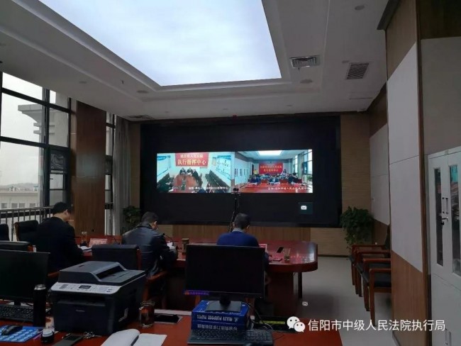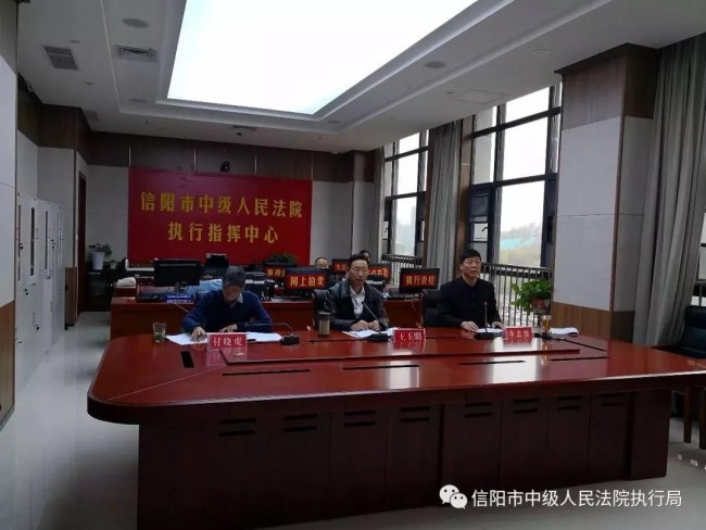 11月29日,信阳中院召开全市执行质效推进会,中院党组副书记、常务副院长王玉明,执行局负责人、法警队支队长李忠智,执行局副局长付晓虎及十个县区法院主管执行院领导及执行局局长参加视频会议。