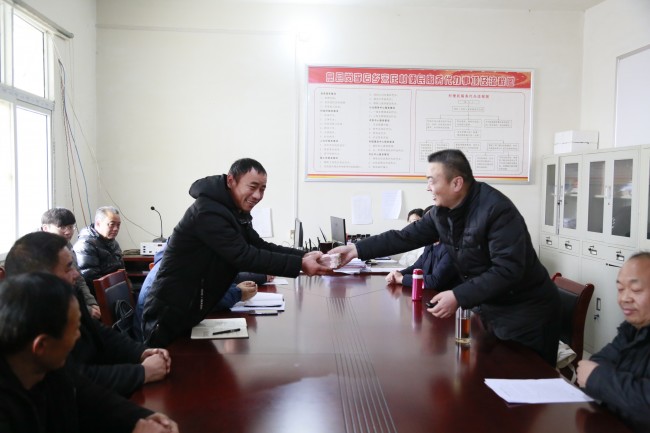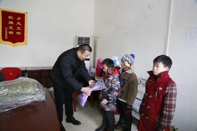 高建刚代表中院将扶贫专项资金交到宋庄村村支书宋军手中,并为宋庄村贫困家庭的孩子们送去书包、棉衣、棉被等学习生活用品。