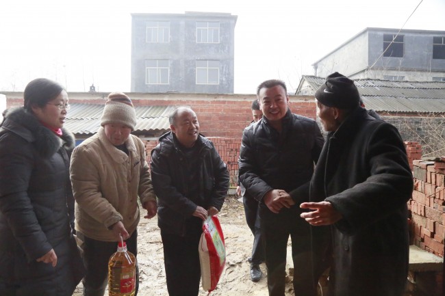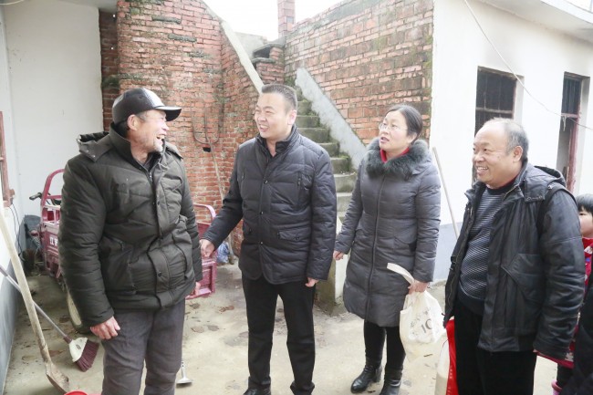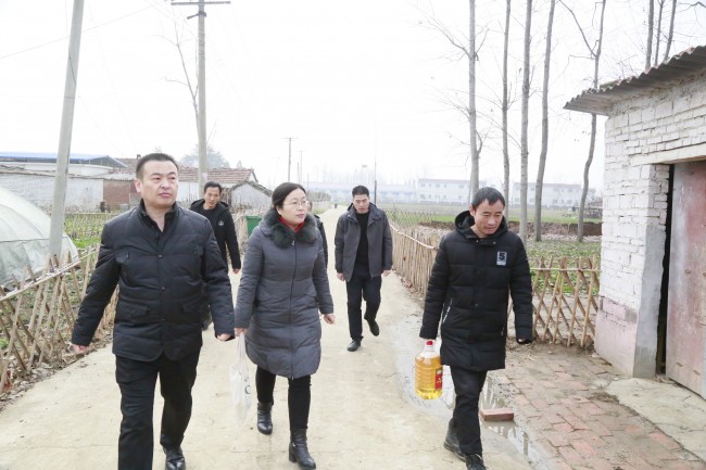 1月8日上午,信阳中院党组成员、政治部主任高建刚一行受中院党组委托,深入定点帮扶村息县岗李店乡宋庄村,走访慰问老党员、困难群众和贫困家庭儿童。中院新选派的驻村第一书记刘建文、机关党委副书记徐贵瑛、老干科科长雨静参与慰问活动。