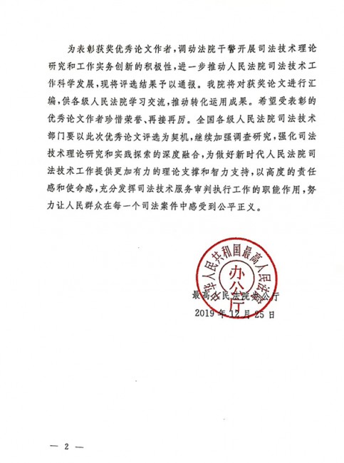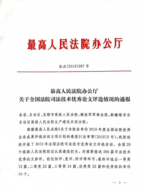 据悉,最高院开展此次论文评选活动旨在调动法院干警开展司法技术理论研究和工作实务创新的积极性,为做好新时代人民法院司法技术工作提供更加有力的理论支撑和智力支持。全国26个高级人民法院共推荐386篇司法技术优秀论文参评。最终评选出一等奖12篇、二等奖22篇、三等奖34篇、优秀奖22篇和优秀组织单位10个。(信阳中院 陈思思)