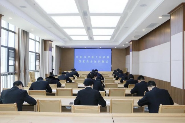 在第五个全民国家安全教育日来临之际,为推动国家安全宣传教育工作深入开展,进一步增强干警国家安全意识,营造“国家安全,人人有责”的良好氛围,4月14日上午,信阳中院严格按照疫情防控工作责任制要求,组织干警代表参加国家安全知识测试。