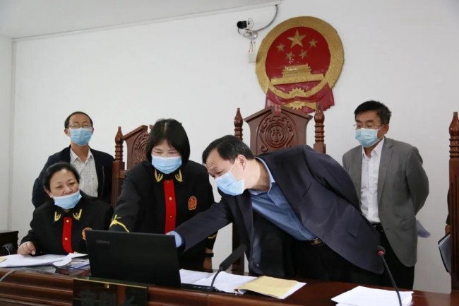 付保玉一行观摩了一起依托“云间互联网法庭”审理的涉恶案件,实地查看“云庭”系统软硬件设施的运行,了解公诉人、被告人、辩护人利用“云庭”现场连线情况。庭审后,付保玉一行就扫黑除恶专项斗争工作与相关刑事审判员额法官进行座谈,对涉黑恶案件审理中涉及的具体问题进行交流探讨。