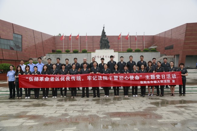 6月10日上午,信阳中院五十名党员干警代表前往全国首批国防教育示范基地、河南省爱国主义教育示范基地、河南省廉政教育基地——鄂豫皖革命纪念馆,参加“弘革命老区优良传统,牢记法院干警初心使命”主题党日活动,以实际行动践行习近平总书记考察调研河南时的重要讲话精神。信阳中院党组副书记、常务副院长王玉明、审判委员会专职委员李辉参加活动。
