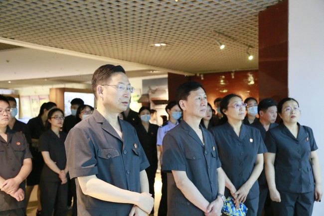 在讲解员的带领解说下,党员干警一边凝神聆听,一边驻足观看。展馆内一千余幅珍贵照片,三百多件革命历史文物,全面展示鄂豫皖革命根据地形成、发展和不断壮大的过程,着重介绍了从大革命时期到解放战争时期各个历史阶段发生在鄂豫皖大地上的重大历史事件。京汉铁路大罢工在信阳、王大湾会议等复原场景,使干警仿佛身临其境感受到革命年代的血雨腥风;共产党宣言、五四爱国运动资料、战士们的战斗和生活用品,无声地讲述着那段筚路蓝缕的艰苦战争岁月;《将星璀璨》的红色革命纪录片,吟唱着先烈们用鲜血把英勇无畏、舍生取义的革命精神谱成的一首彪炳千秋的英雄史诗,让干警的心灵得到净化,精神受到洗礼,意志得到淬炼。