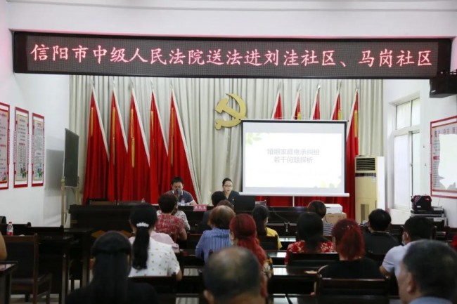 为进一步提升群众法治意识,7月16日下午,信阳中院组织员额法官进社区开展民法典宣讲活动,中院民三庭副庭长吴孔玉以“婚姻家庭继承纠纷若干问题探析”为题,为信阳市高新区城东办事处刘洼社区、马岗社区居民及工作人员上了一堂生动法治课。
