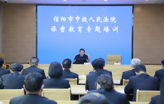 为认真贯彻落实国家、省、市委加强保密教育工作安排,做好新形势下机关保密工作,进一步增强保密意识,强化保密自觉,落实保密责任,提高保密水平,11月27日下午,信阳中院邀请市委保密办副主任鲁军为全院干警开展保密教育专题培训。培训会由信阳中院党组副书记、常务副院长王玉明主持,中院院领导和机关全体干警聆听授课。