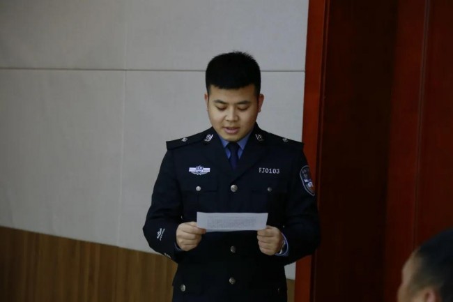 随后,法警支队党支部党员发展对象周阳在党支部大会上发言。