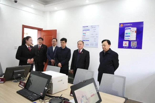 在罗山县法院,王韶华一行实地参观了互联网调解室、律师调解室、行政调处中心、家事调解室,该院工作人员详细介绍了该院一站式多元解纷机制和一站式诉讼服务体系的建设情况及工作成效。