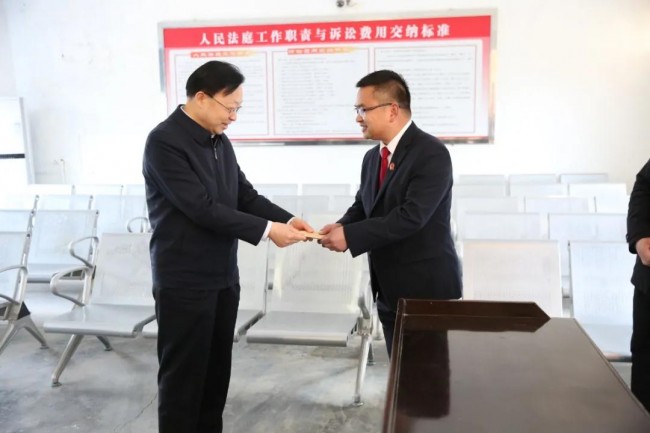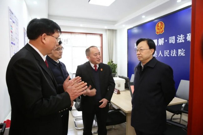 2月4日,河南省高院党组成员、副院长王韶华,环资庭副庭长杨巍、研究室司法改革科科长关永生一行赴信阳法院看望慰问龙山法庭、东岳法庭干警并召开座谈会。信阳中院党组成员、副院长郭长林,息县县委常委、政法委书记霍昱廷,罗山县法院党组书记、院长何啸、息县法院党组书记、院长王明强,先后陪同。