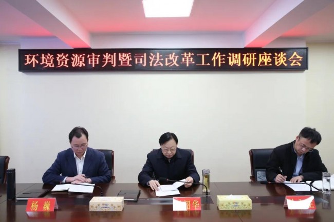 在罗山法院召开环境资源审判暨司法改革工作调研座谈会,省高院党组成员、副院长王韶华出席会议并讲话。中院环资庭庭长沈继红、罗山县法院院长何啸,党组成员、副院长王娟及相关工作人员参加会议。座谈会由信阳中院党组成员、副院长郭长林主持。