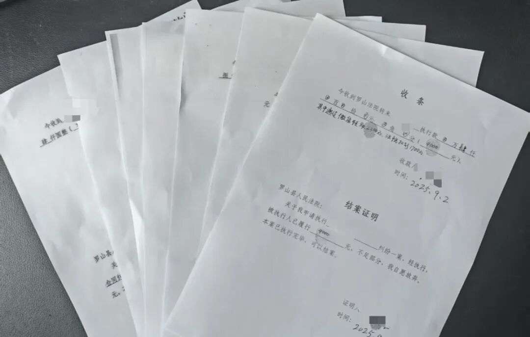 “太感谢你们了,帮我们讨回了工资款,谢谢法官……”,申请执行人孙某、郭某等人在领到工资款后,连声道谢。近日,罗山法院执行局通过强化执行措施、活用执行策略,在一日内成功将9起涉农民工工资案件批量执行到位,为多名农民工追回被拖欠工资共计17万余元,高效维护了劳动者合法权益,有力彰显了司法权威与温度。