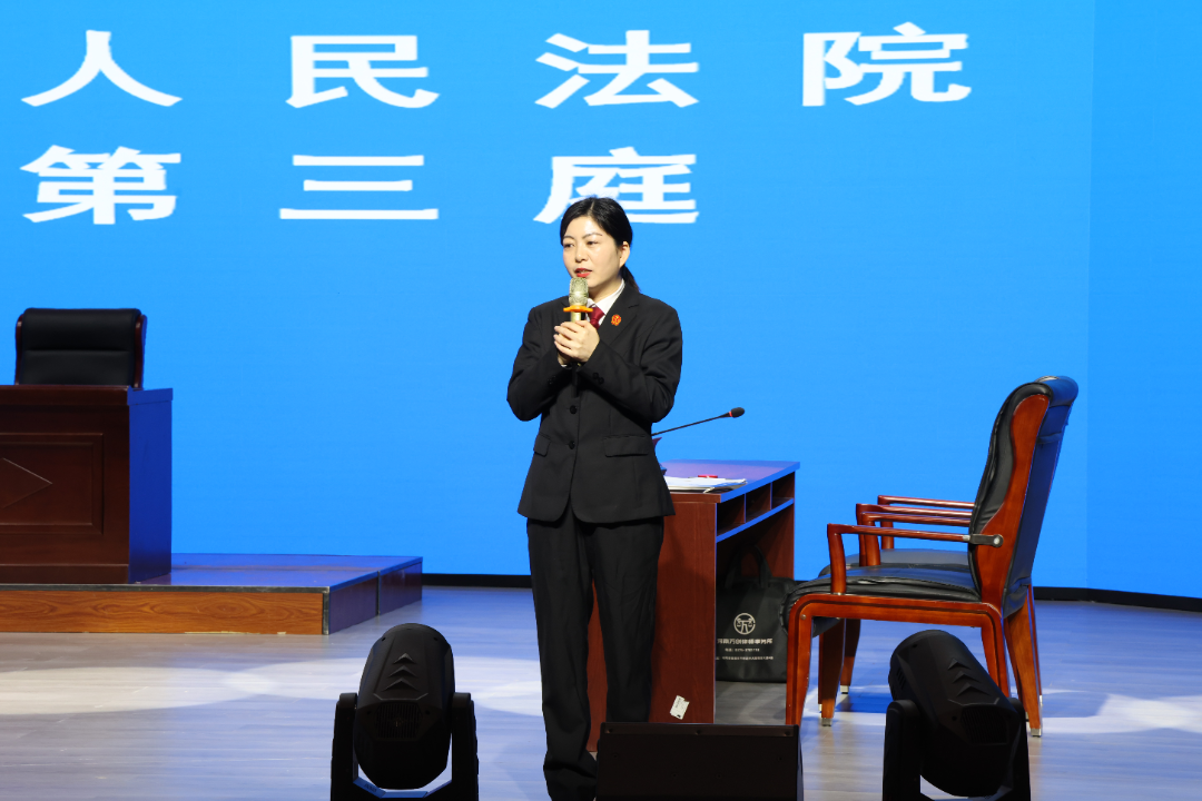 “现在开庭!”随着审判长董全手中的法槌清脆敲响,整个报告厅瞬间安静下来。从法庭调查、举证质证到法庭辩论,每一个环节都严格按照法律程序进行。同学们凝神屏息,目光紧随法官、公诉人、辩护人与被告人,在真实的案件细节和法律交锋中,感受法律的庄严与严谨。