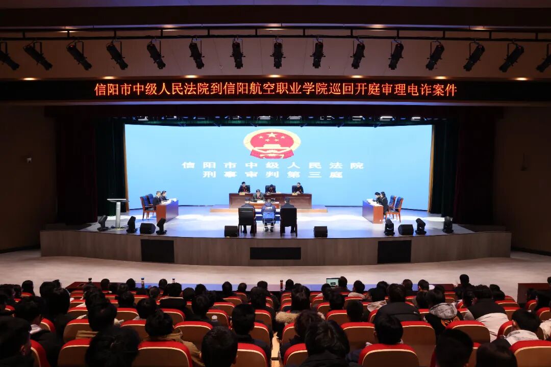庄严的国徽,肃穆的审判席,熟悉的教室正在开庭审理一起刑事案件。11月18日上午,信阳中院刑三庭将一起涉嫌掩饰、隐瞒犯罪所得罪的案件庭审直接“搬”进了信阳航空职业学院的学术报告厅。信阳航空职业学院、信阳航空技师学院、信阳第六职业高级中学等五百名师生现场旁听了这场零距离的“法治公开课”,并与法官展开了热烈而深入的互动问答。