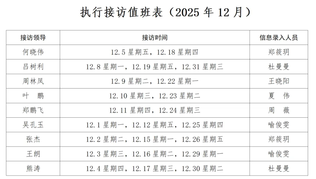 信阳中院全面落实“有信必复”、“接访即办”工作要求,认真做好“送上门的群众工作”,坚持轮流执行接待制度,由中院主管执行工作院领导及执行局员额法官在工作日轮流在执行接待窗口值班,定时定点接待执行案件的来访人员,面对面沟通,释法明理,督促并推进执行案件办理,化解矛盾纠纷,力争实质性解决纷争。
