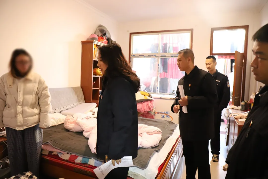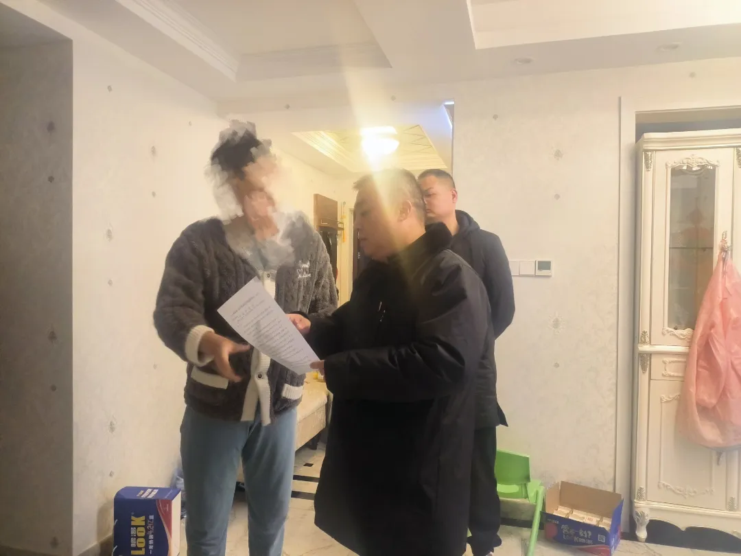 同一时间,另一组干警们亮明身份后采取“敲门行动+现场释法”模式,对情绪抵触的被执行人开展释法明理,当场告知“有能力履行而拒不履行”的法律后果,成功促使2名被执行人当场履行义务。