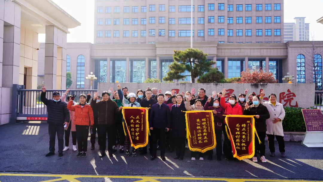 12月5日上午,潢川县法院外一片暖意融融。28位申请人脸上绽放着灿烂的笑容,他们自发聚集,将三面满载感激之情的锦旗,郑重地交到潢川县法院党组书记、院长李柏定,党组成员、执行局局长肖艳茹以及执行法官许振威的手中,并报以热烈掌声。“感谢法院为我们主持公道,感谢法官为我们拿到血汗钱!太感谢了!”质朴的话语,道出了他们心中积压已久的激动与欣慰。