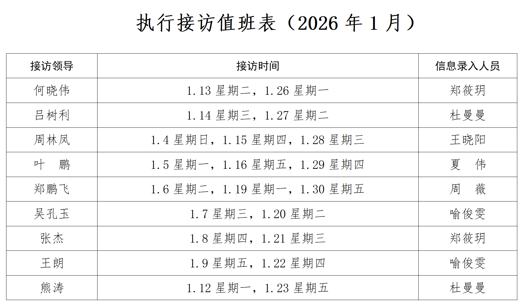 信阳中院2026年1月份执行接待日公布