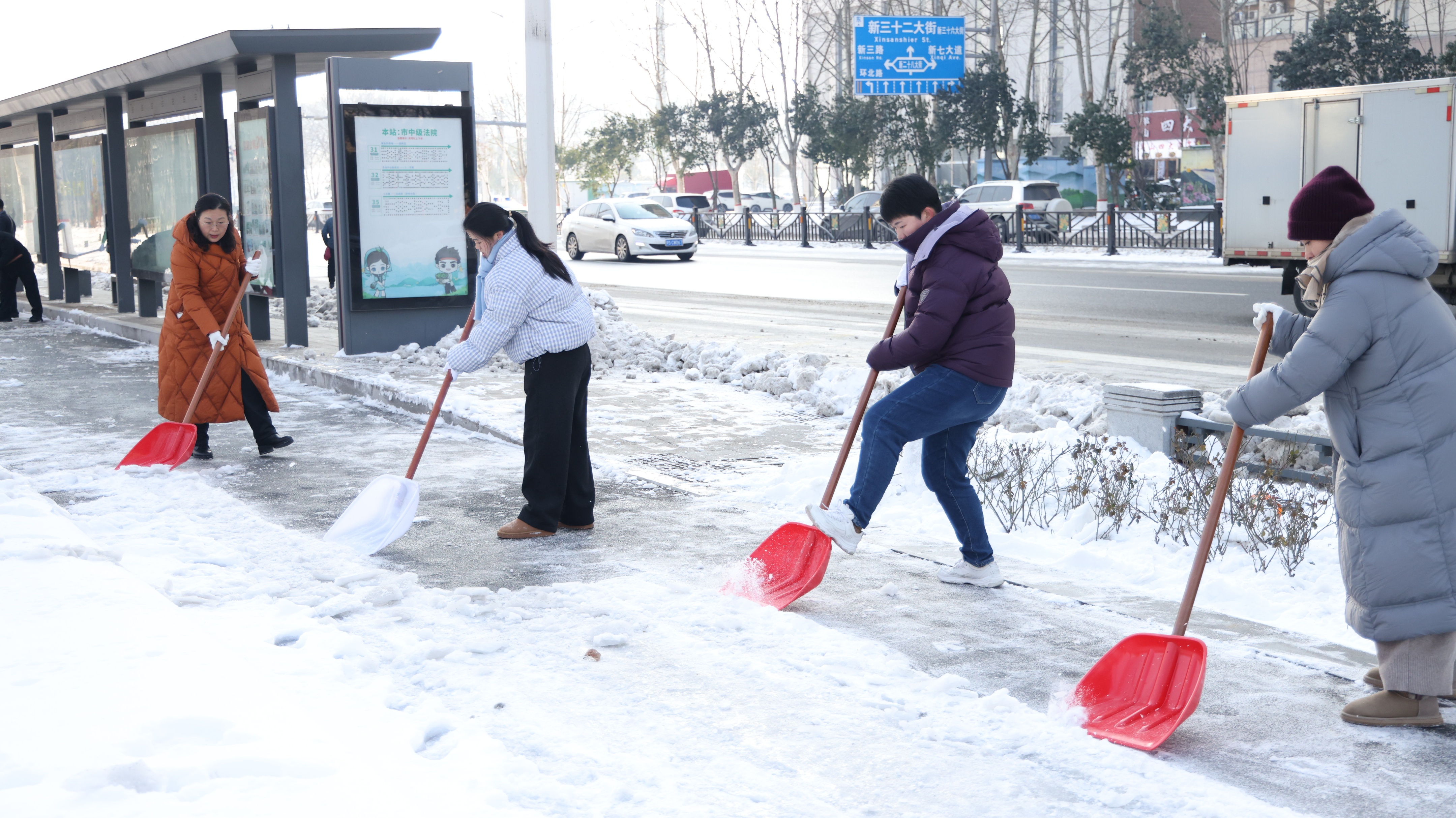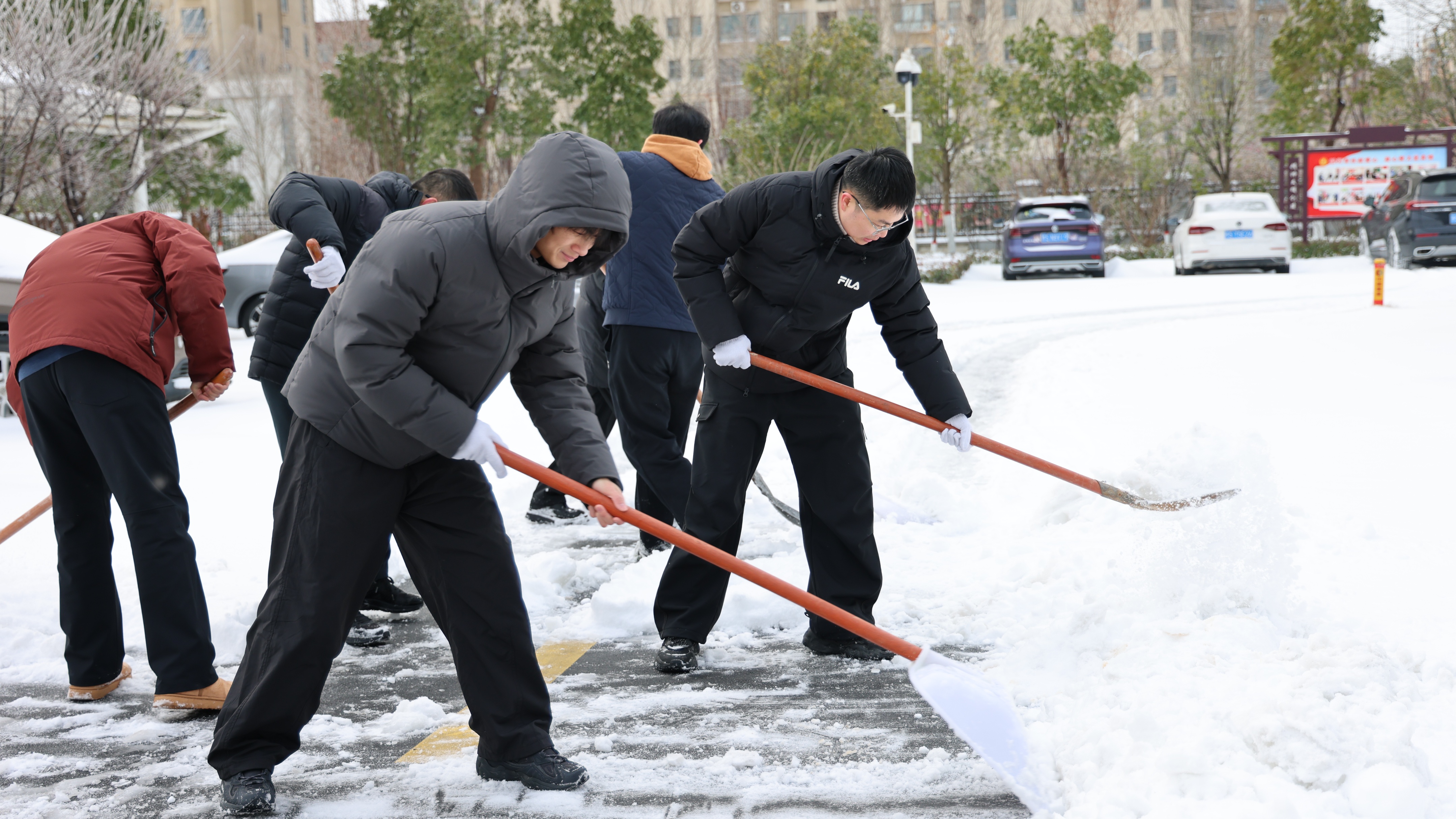 寒风凛冽,冰雪凝路,但院外却是一派热火朝天的劳动景象。此次清扫主要针对院外周边非机动车道、人行通道、公交站牌等,做到清雪无死角、除冰全覆盖。干警们手持铁锹、扫帚等工具,分工协作、默契配合,有的奋力铲除路面坚冰,有的仔细清扫残余积雪,有的合力将积雪清运至指定区域。尽管寒气袭人,大家的手脚冻得通红,哈出的白气在冷风中四散,但每个人都干劲十足、热情高涨,一条条干净通畅的道路也被及时开辟出来。